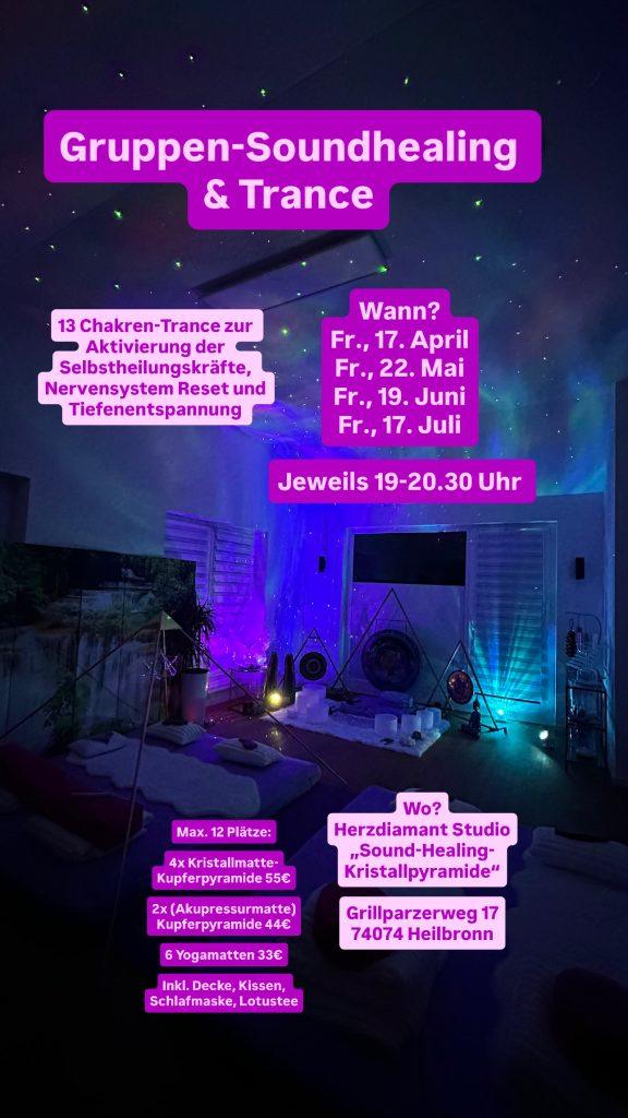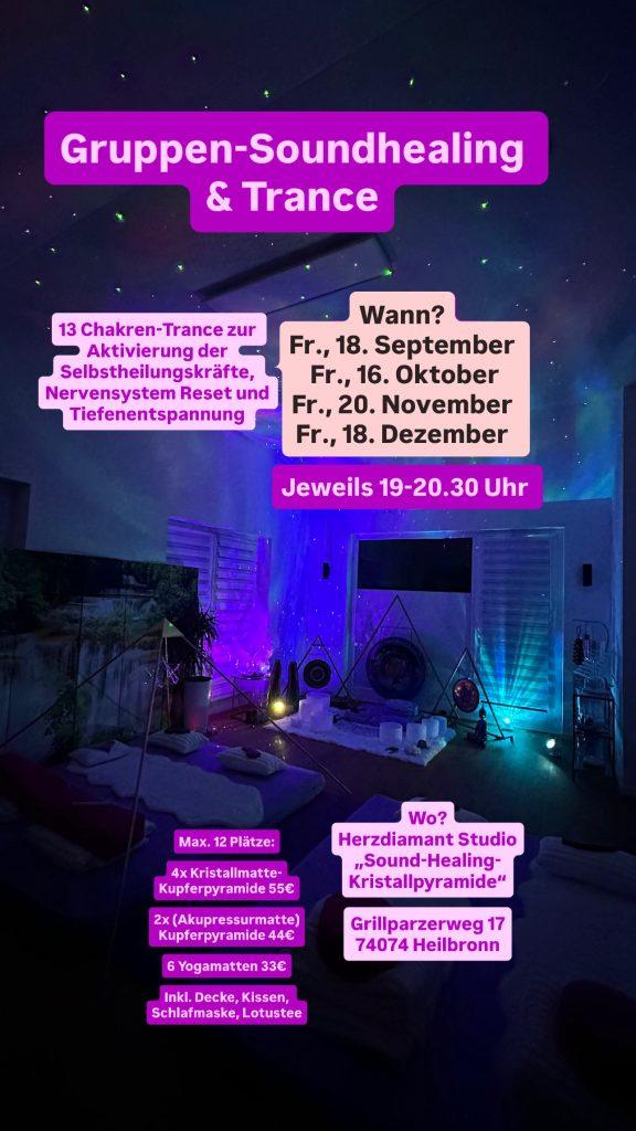 - Gruppen-Soundhealing & Trance Abende in meinem Studio vor Ort für Kleingruppen, 1,5h