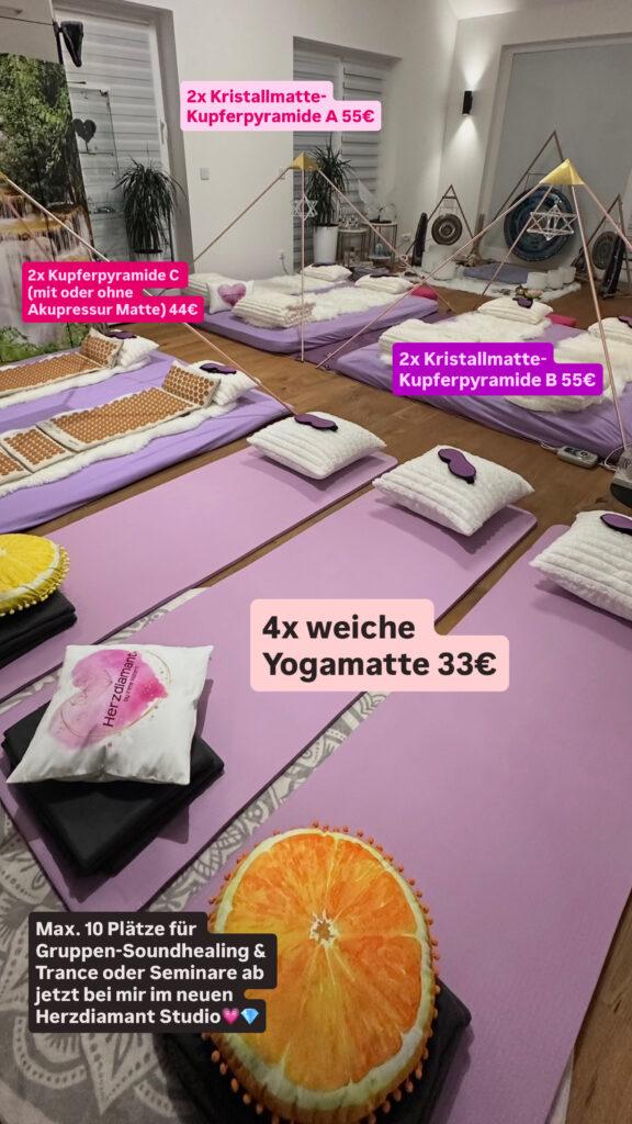 Ab Mitte März 2026 finden alle meine Hypnose–Coachings, Energiearbeit/ Reiki auf den 2 Kristallmatten in der neuen Kupferpyramide, Gruppen-Soundhealing & Trance Events und Seminare in meinem neuen Studio in Heilbronn statt: Grillparzerweg 17, 74074 Heilbronn (Dachgeschoss, 3. Stock).