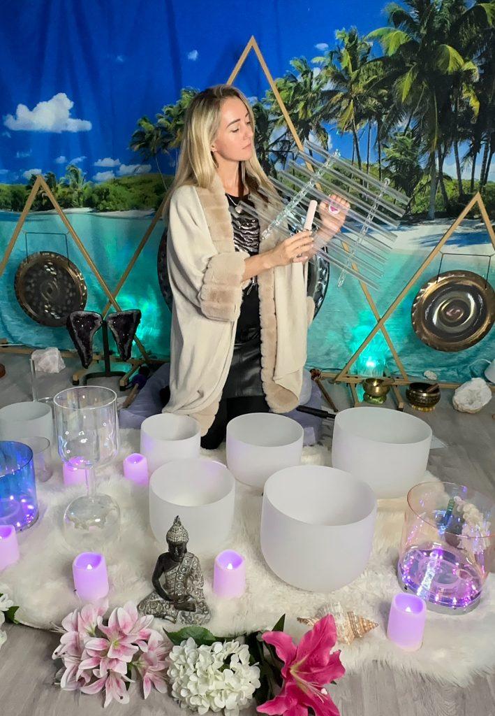 - Lass den Klang der Kristallharfe (optional) den Lichtkörper harmonisieren.